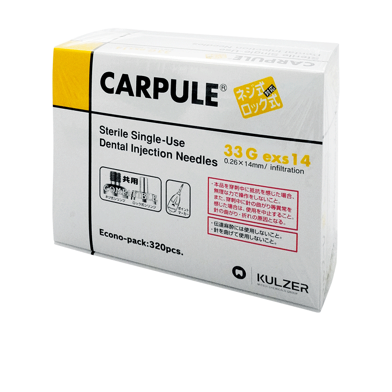 業界最細35Gで内径は33Gと同じ針角度9°と鋭利で刺通抵抗値を33Gより15%以上低減。