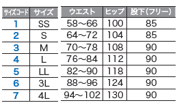 仕 様:両脇二重ポケット/ウエスト総ゴム紐入り/右後ろポケット