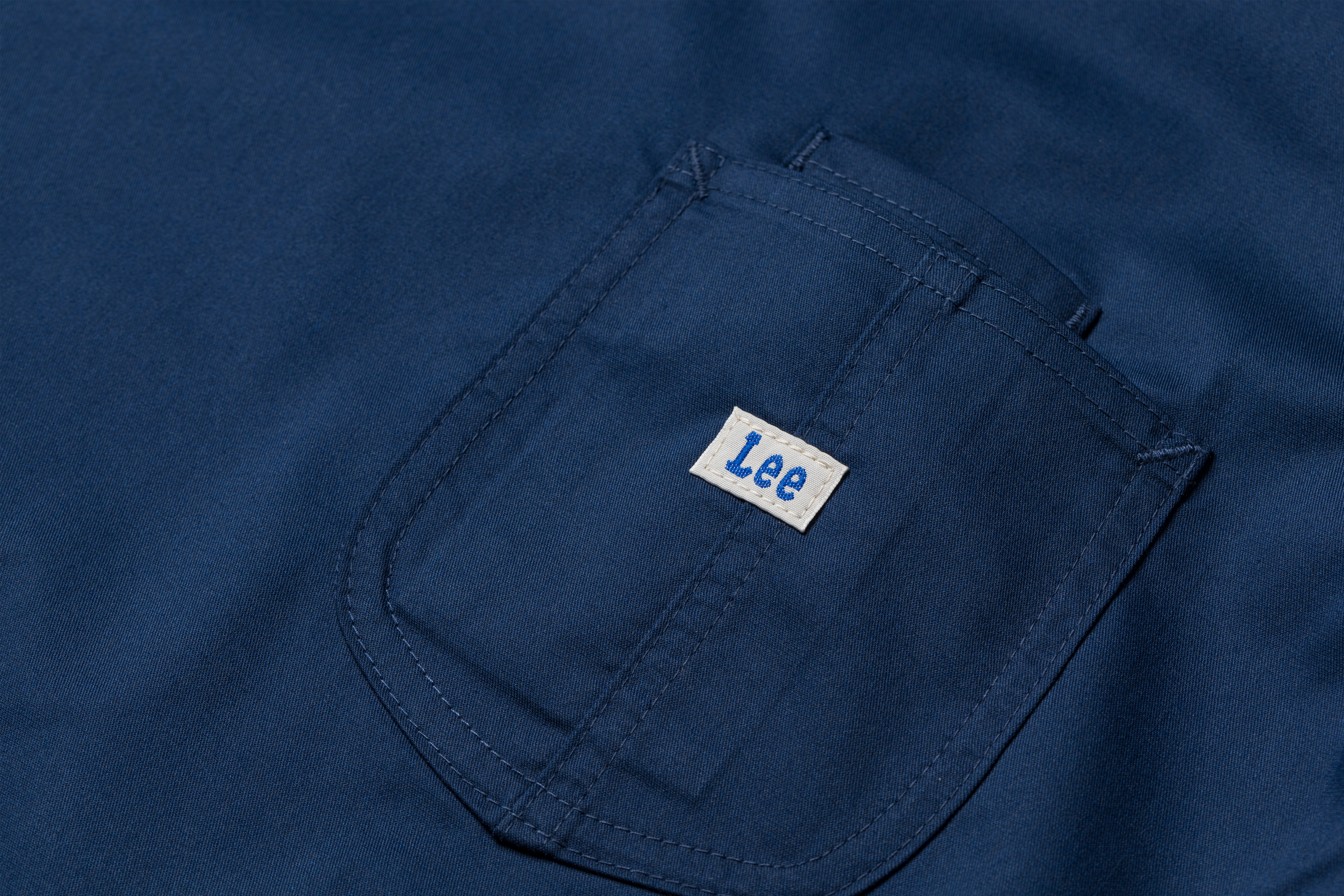 スナップ釦やスリット入りで着脱らくらく、動きもサポート。Leeワークウェアオリジナルネーム付き。